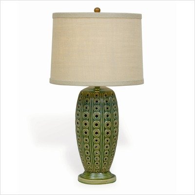 LPAS-096-01 Our pierced hurricane lamp is made with a reactive ceramic glaze for a blending of color. Each piece is a work of art with color. The light passes through the holes to create an wonderful mood in your room. Features: -Table lamp. -Morocco collection. -Multi-green finish. -Material: Ceramic with a reactive glaze. -Beige gunny round hardback drum shade, self single fold trim; brass spider. Specifications: -150 Watt max 3-way switch. -Shade dimensions: 11'' H x 14-15'' W. -Overall dimensions: 29'' H x 15'' W x 15'' D.