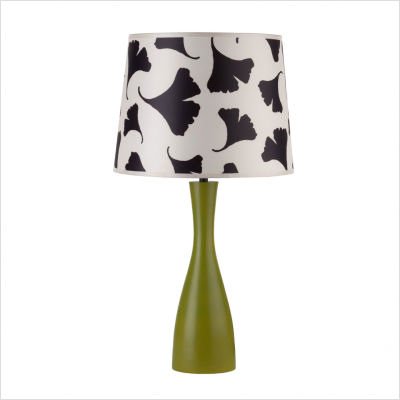 RS-260OL/DFG Base: Olive, Shade: Driftwood Silk Glow Pictured with Grass base and Black Ginkgo shade Features: -Table lamp. -Oscar Collection. -Base available in blue, carrot, grass, olive, and soy. -Shade available in a variety of fabric options. -Printed shades are hand blocked 100pct silk fabric. -On/off socket switch. Specifications -Accommodates one 60W incandescent bulb. -Shade diameter: 9''. -Overall dimensions: 18'' H x 9'' W.