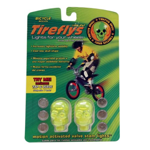 With the UV Green Skull from Tireflys, everyone gets something that they like. Children get a cool light up skull they can take with them wherever they go on their bike, and parents get the safety function of a motion sensitive flashing light. The lights add increased nighttime visibility for riders, and raises awareness to motorists that they may be sharing the road. The Tireflys UV Green Skull provides a unique opportunity to create fun in motion while providing the safety of an added light for the bicycle . Great for children of all ages.